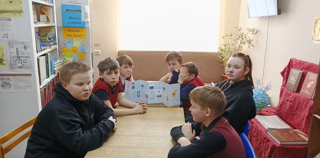 12 февраля учащиеся 6 класса побывали в библиотеке на уроке мужества. Библиотекарь Л.А. Новикова познакомила их с буклетом «Погиб при исполнении». Подростки посмотрели видео-презентацию о земляке: «Николай Иванович Баженов – герой из деревни Волеги». Всего 20 лет отвела Николаю судьба (1960-1980). Его биография коротка: родился в деревне Волеги Бородулинского сельского совета, рос в многодетной семье, окончил 8 классов Бородулинской школы, Зюкайское СПТУ-71, ушёл в армию… Ефрейтор Николай Баженов погиб при выполнении боевой задачи во время разведывательной операции на территории ДРА, проявив геройство и мужество. Посмертно награжден орденом Красной Звезды.
