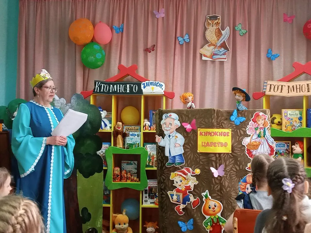 И на заключительном мероприятии в пятницу в гости к ребятам пришла Королева книг вместе со сказочными героями Незнайкой и Буратино. Она провела с ребятами несколько викторин и конкурс пословиц. С Незнайкой ребята отгадывали песенки и делали разминку. А Буратино предложил разобрать потерянные литературными героями вещи.