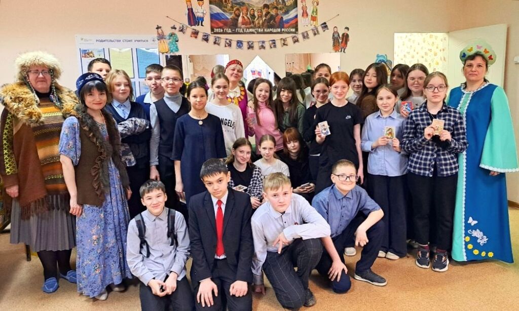 В рамках акции «Библиосумерки-2026» в детской библиотеке прошла квест-игра «Тайны народов России», приуроченная к Году единства народов России. Мероприятие было направлено на знакомство с богатым культурным наследием, традициями и обычаями разных национальностей, проживающих на территории нашей страны. Участники игры отправились в виртуальное путешествие по просторам России, делая остановки на тематических станциях: «Мозаика единства народов», «Народы Севера», «Татарский народ» и «Русский народ».